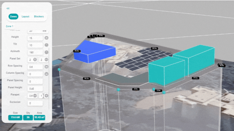 Parapet Height: Utilise the Parapet Height tool to specify the height of parapet elements in your solar design.