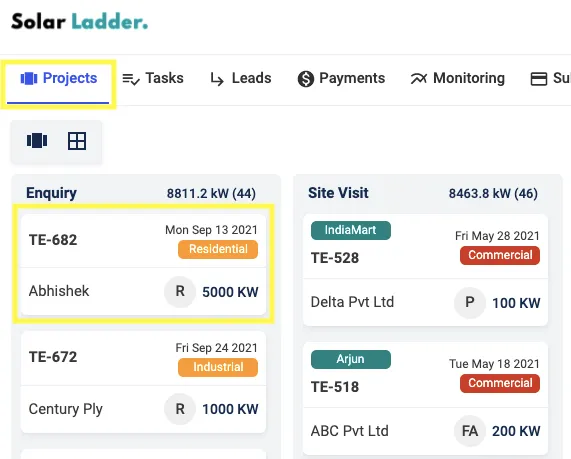Step 1: Go to Projects Tab and Open the project you want to backdate