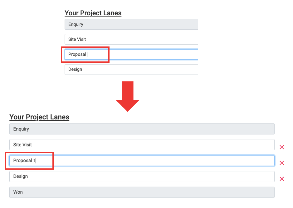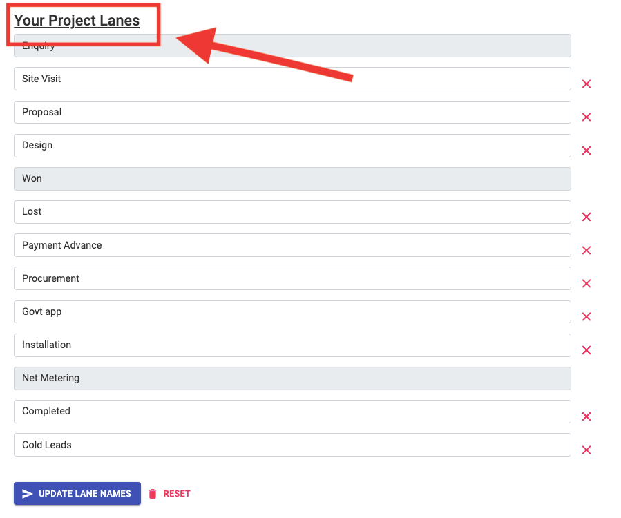 How To Add A New Project Lane Step 1: Go to Settings and Click on Home Step 2: Scroll Down to your Project Lanes and decide the Position of the New Lane For Eg. Lets say you want to add a Lane called Site Visit 2 between Proposal and Design, since ...