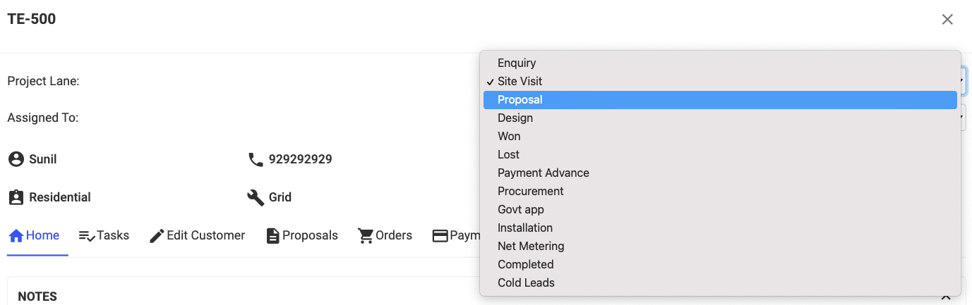 How To Add A New Project Step 1: Go to Project Dashboard and Click on + Add Project Step 2: Enter Customer Details Step 3: Select the "Project Lane" to which you want to add this project to Step 4: Select the Member you want to Assign the Project to ...