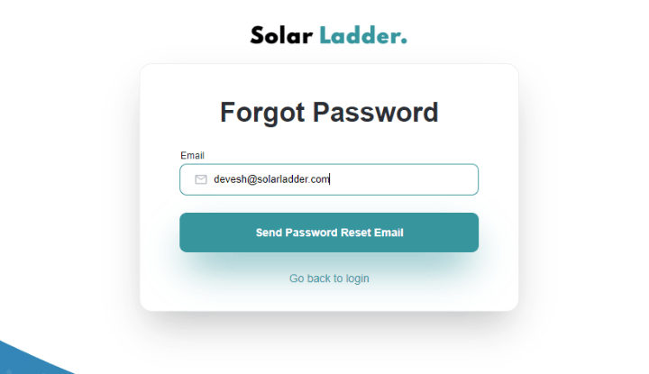 What to do if you forget your Password Step 1: Go to www.Solarladder.com and Click on Login (Present on top right corner of screen) Step 2: Click on "Forgot Password?" Step 3: Enter your Email ID and Click on "Send Password Reset Email" Button Step ...