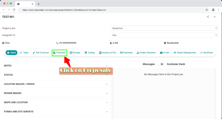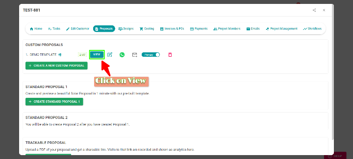 Step 1 : Click on the project for which you wants to make the proposal Step 2 : Click on proposals Step 3 : Click on create a new custom proposal Step 4 : Click on the Proposal Template Box Step 5 : Click on the template that you want to Create Step ...