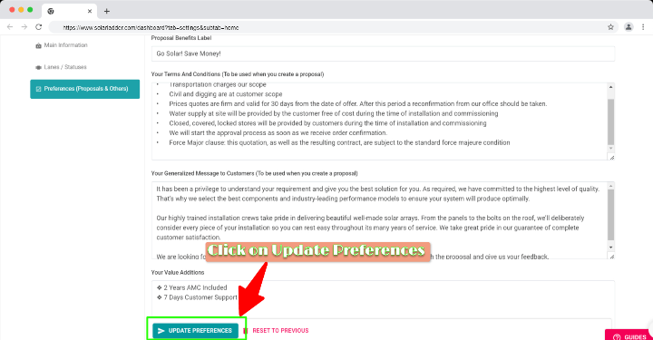 Step 2: Click on Preferences (Proposals & Others)
