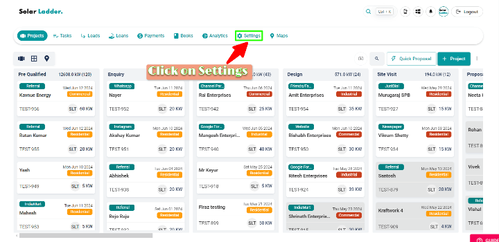 Step 1 : Click on Settings