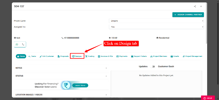 How to get started with design editor (Video Tutorial): https://youtu.be/U1cPTTf8e58 Step 1: Open any project, you want to create the design. Step 2: Click on "Design" Step 3: Select the location and update it Step 4: Click here to "Create new ...