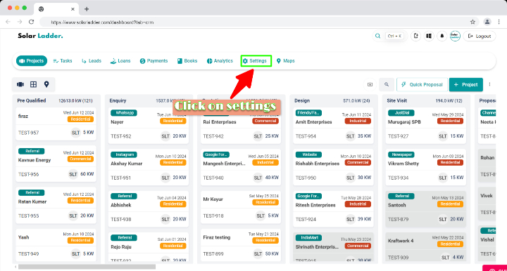 Step 1 : Click on Settings