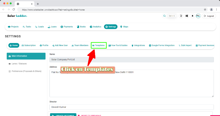 Step 2 : Click on Templates