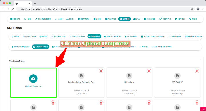Step 5 : Click on Upload Template