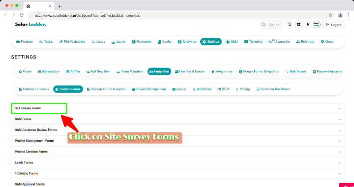 Step 4 : Click on Site Survey Forms