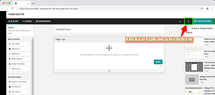 Step 7 : Click on Upload a Form Icon