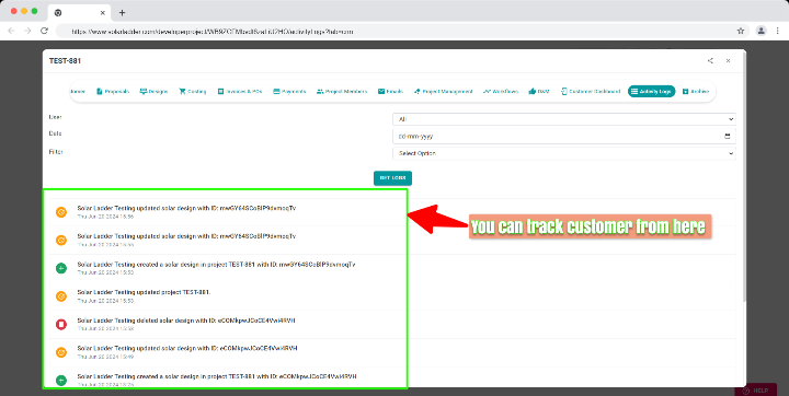 How To Backdate a Project Creation Step 1: Go to Projects Tab and Open the project you want to backdate Step 2: Go to "Edit Customer" Step 3: Select the New Date Step 4: Click on Update Project