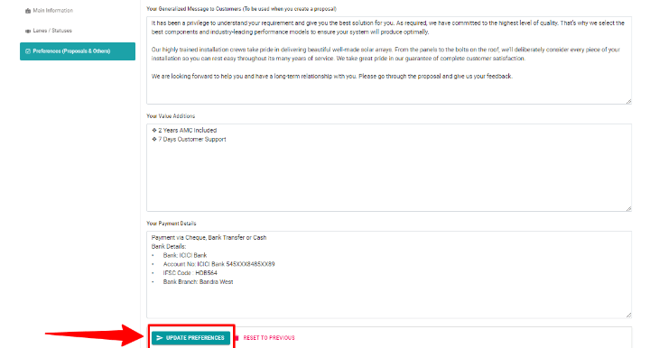 Step 1 : Click on the Project Step 2 : Click on Proposals Step 3 : Click on Edit Custom Proposal Icon Step 4 : Make sure to click on Update Proposal after making changes in proposal