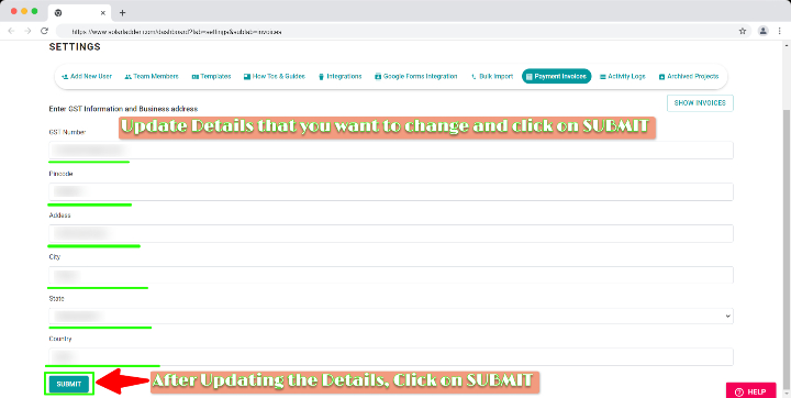 Step 4 : Update the Details that you want to Edit & After Updating please click on SUBMIT