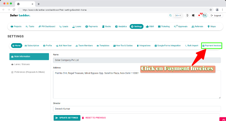 Step 1: Click on the Settings Step 2: GO to HOME Step 3: GO to Preferences (Proposals & Others) Step 4: Scroll down, Go to "Your Payment Details" and Update the details in the box Step 5: Click on "Update Preferences" to save the data.